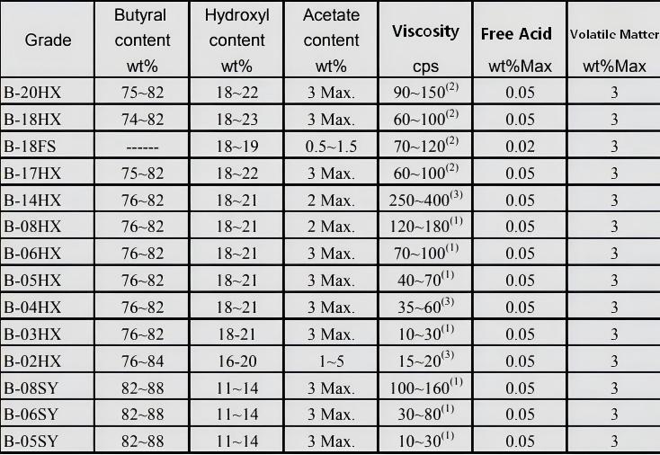 2. PVB Specification Classification and Viscosity Range Division